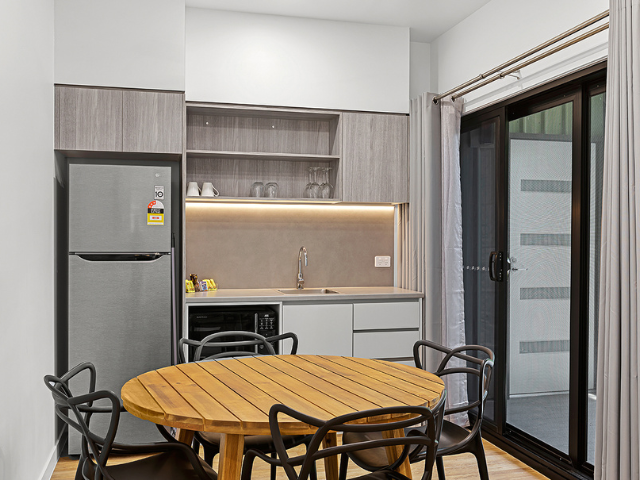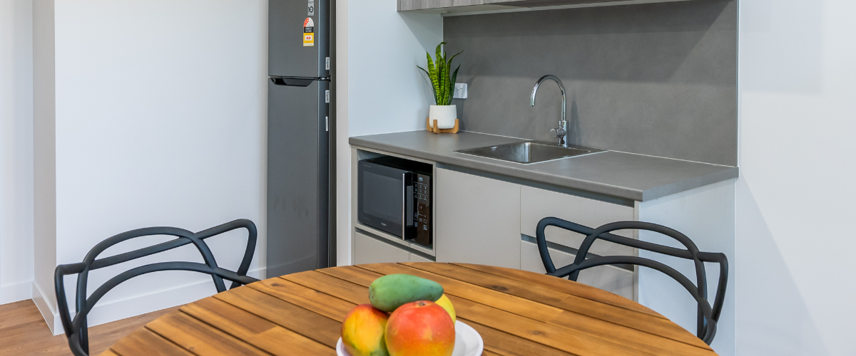 - Fridge, microwave, kettle, and toaster